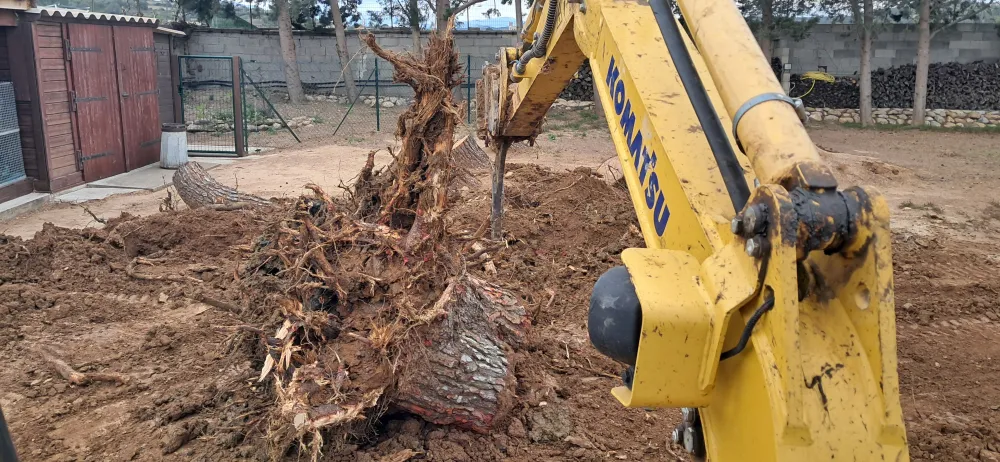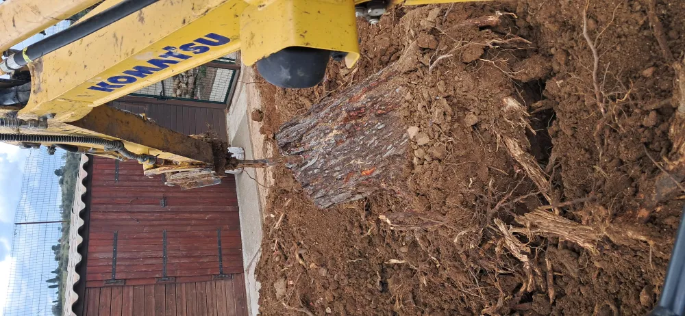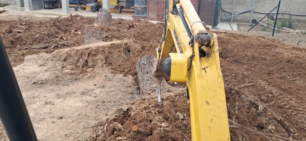 Lors de ce chantier à BAIXAS, L'entreprise Eric Terrassement VRD à Llupia a procédé au déracinement d’une douzaine de troncs d’arbres préalablement taillés par des élagueurs. Il s’agissait de la deuxième utilisation de la dent ripper, dont l’efficacité s’est révélée remarquable, même avec une mini-pelle de 1,8 tonne.